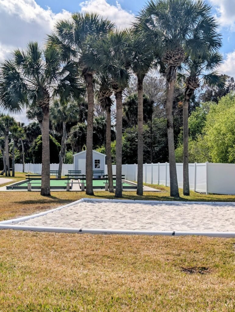 The amenities were pretty nice. The park had a Social Committee that hosted a lot of seasonal activities, such as dances, potlucks, pool parties, food trucks and holiday celebrations. There was a pool with a separate hot tub, a covered tiki by the pool, ample loungers, and tables with chairs and umbrellas. Activities included Pickleball, Shuffleboard, Volleyball, Tennis and Horseshoes. The clubhouse offered space for parties, dinners and other activities such as Bingo and Card Games. There was also a fitness center within the clubhouse.
