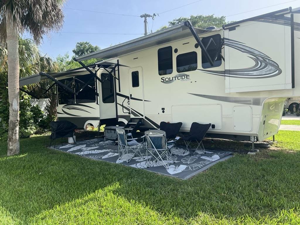 The resort had a lot of seasonal and full time residents, but capacity and availability for weekend and short term rentals as well. We were there in the off-season & we had a nice full hook-up site with no neighbors behind us, just a fence with a lot of green foliage and lush green grass. We had great views and privacy from inside the camper. There was a seasonal residence on one side and an empty site on the other. There was parking for 2 vehicles at each site, but additional vehicle parking was available at the office/clubhouse. This resort was popular among the Canadian and German seasonal visitors. This resort is packed in-season, so you’ll want to reserve early.