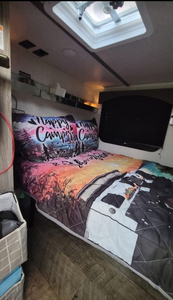 I bought a bunch of stuff to decorate and make it feel more homey and to create more organization and storage space. Overall, I love the little camper, but it just doesn’t make sense anymore since Jason & Bella came with a big ole Fifth Wheel! We use the Glamper now so I’m sure we’ll eventually sell it. But for now, it’s available if friends and family want to join us but don’t have their own camper.